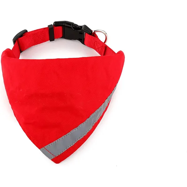 Collar is full adjustable to keep your dog comfortable. D ring provided on collar to attach leash. Reflective strip on bandanna keeps your pet safe at night. Available in four colors and 4 sizes (XS - Large).