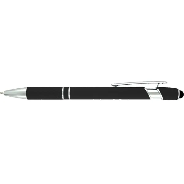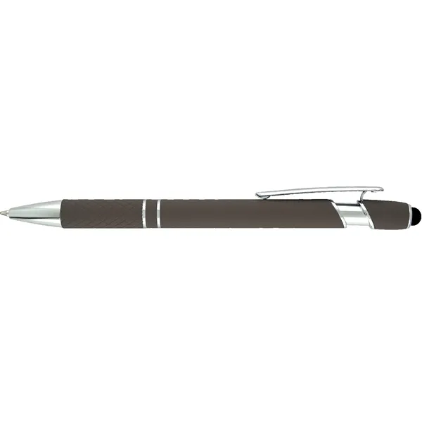 Reach new audiences with this soft touch pen as your next gift! It#039;s made of metal, measures 5.62" L x 0.4" W, has a rubberized finish for added comfort, and a handy stylus designed for increased sensitivity with touch screen devices. This comes available in your choice of black or blue medium ballpoint ink. Add your company name or logo for maximum visibility. Promote your business with an amazing item like this!