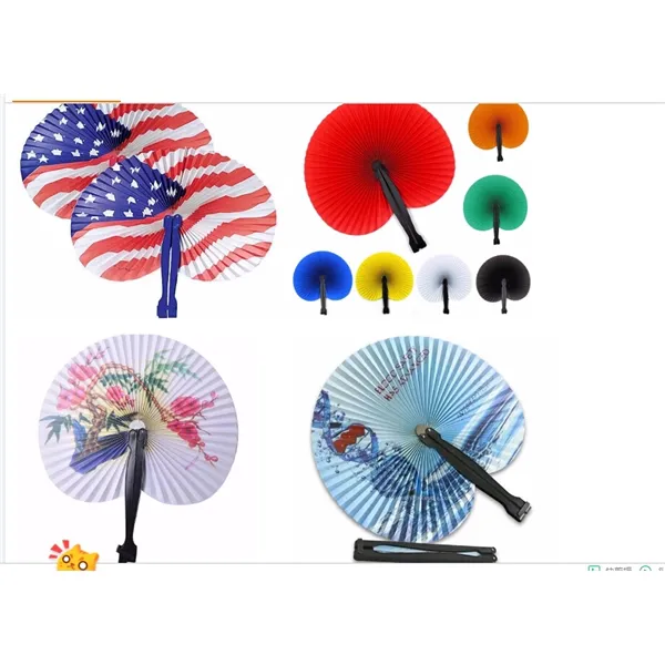 This folding hand fan is made of 5.5" paper and plastic fan can fit in your pocket, and unfolds into that classic rounded shape that#039;s ready to comfort you on a hot day, whether you#039;re inside or out. Your logo can be imprinted on it.