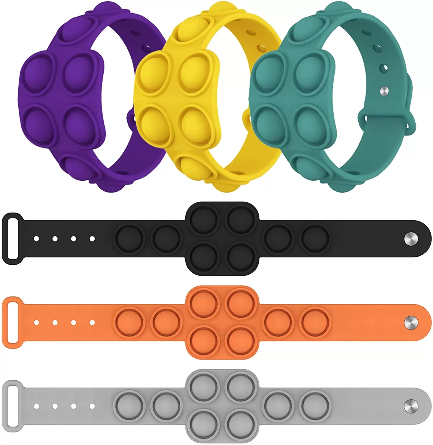 The push pop bubble toy wristband is made of high-quality silicone, durable and not deformed. It is adjustable and easy resizing for people of all ages. It is convenient to carry and can help relieve work pressure and easily deal with various anxiety anytime and anywhere. It is reusable and washable endlessly. 10" L x 1 3/4" W x 1/2" H. Additional charges may apply.