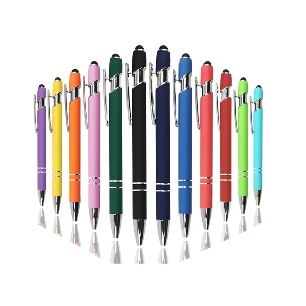 Pen and Stylus. These stylus pens are compatible with tablet, cell phone, computer screen or any other touch screen devices.The smooth rubberized barrel gives a soft touch grip for extra comfort, smooth writing and just right weight for effortless.5.5 * 0.6 inches; 1.0 mm medium point, black ink is easy to dry, not easy to smear to cause smudges.These chic writing instruments are perfect gifts for the guest book table at conventions, trade shows, parties and so much more. Perfect for school,office,family use.