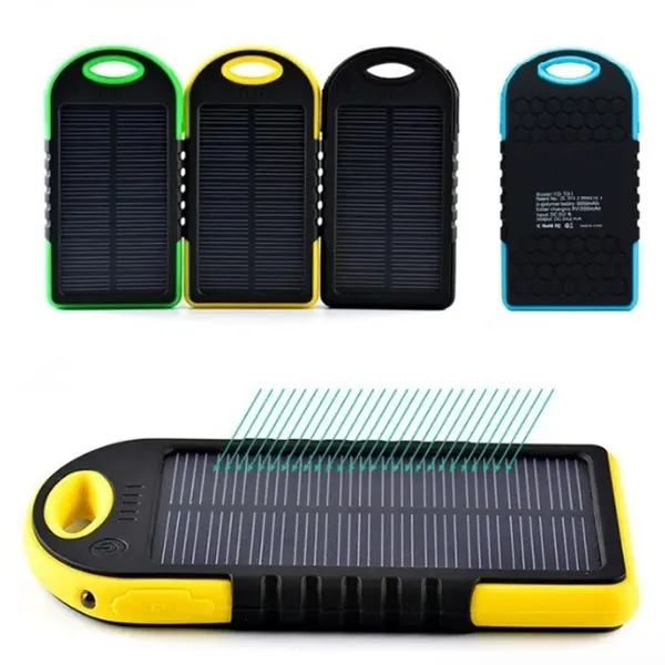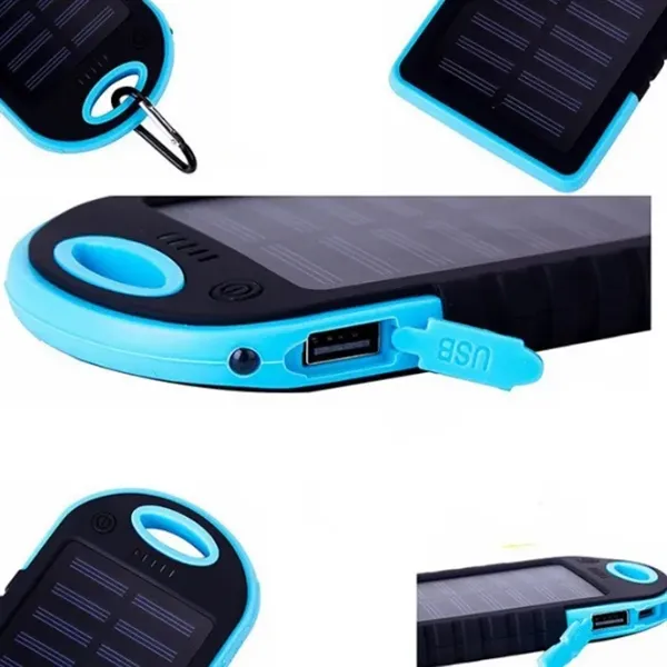 You can use the included micro USB cable and plug it in to your wall plug or you can put the charger in direct sunlight to charge.Made of ABS, PC and fireproof plastic shell, with environmental silicone shell.Geat choice for camping trips or other outdoor activities where outlets are scarce. Allow 2 digital devices simultaneously. Perfect for handing out to those who like to keep their devices charged up while they#039;re out and about.