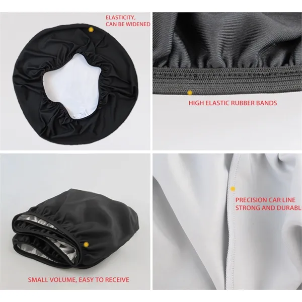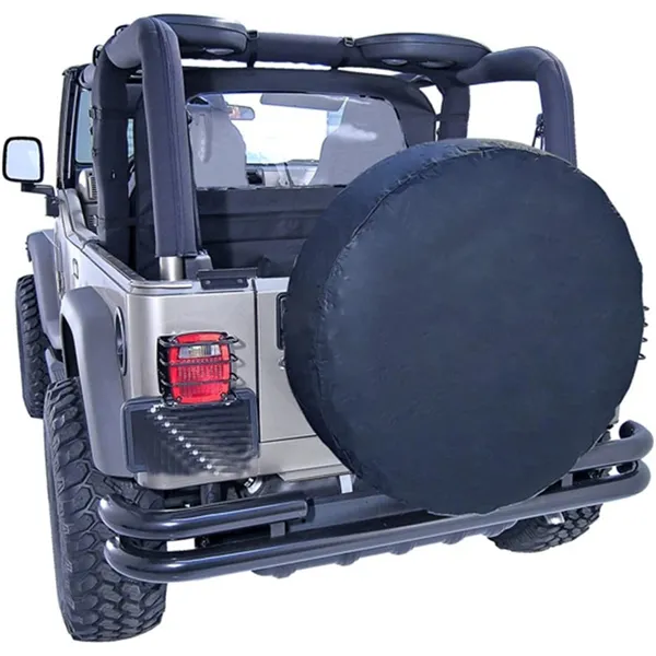 The spare tire cover is made of PVC leather,which is a strong and washable material. The cover helps guard against sun,rain,mud,and other elements,messes can be wiped or hosed off. The high quality material and workmanship make it durable and easy to maintain. It is a perfect way to store your summer or winter wheels,and fits all wheels up to 18 inch. The best thing about these spare tire covers is that they practically install themselves,they simply slip on and stay on with the super strong elastic bands with no tools required! Your logo is welcome!