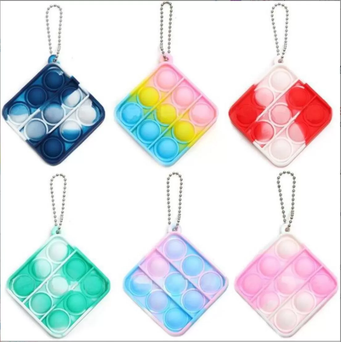 The polygonal decompression toy with 9 bubbles not only can reduce stress,but also can be used as a small game for parties and friends.This multipurpose silicone squeeze toy is the perfect game for parents,elderly,children,and adults to play.Have fun anywhere anytime with this great sensory tool.At the same time, the hanging hole design is more convenient for storage.The general pack is blank opp bag.2.28" L x 2.28" W x 0.57" H