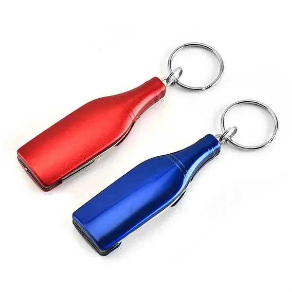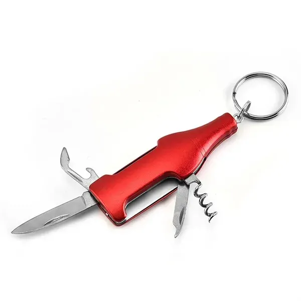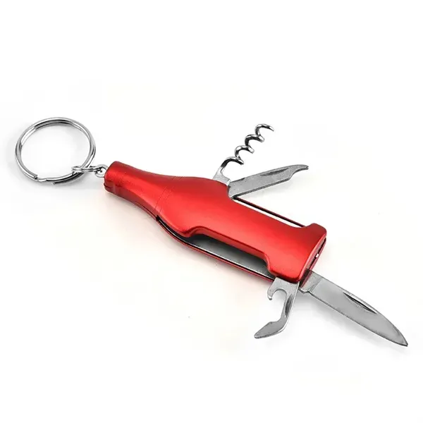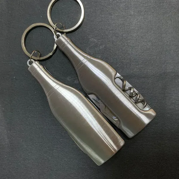 Pop the top on your next promotion with this unique bottle opener and corkscrew. This 4.29" x 1.02" device is made of durable stainless steel with a design that fits in the palm of your hand. Use the loop end to make quick work of crown and smooth bottle caps and tops, or pull away the corkscrew and pocket knife blade to remove corks and bottle foil. Choose a color and add your school, sports team, organizational or company logo or message through our laser engraving process to customize. Prices based on sea shipping. Rush service is also available for an additional charge.