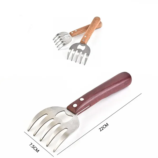 The bear paws can use ultra-sharp claws to chop up pork, chicken, beef, turkey, fish and other food in a few seconds. Meat claws can effectively complete the work of barbecue/cooking party without worrying about the chaos and helplessness brought by traditional knives/forks.The long wooden handle of the bear paws can keep your hands safe and keep a good distance between your skin and the food you are handling and will not burn your hands . This meat fork with a bottle opener function design can easily open beer or soda,which is an indispensable barbecue tool for barbecues or picnic parties.Customized is available.