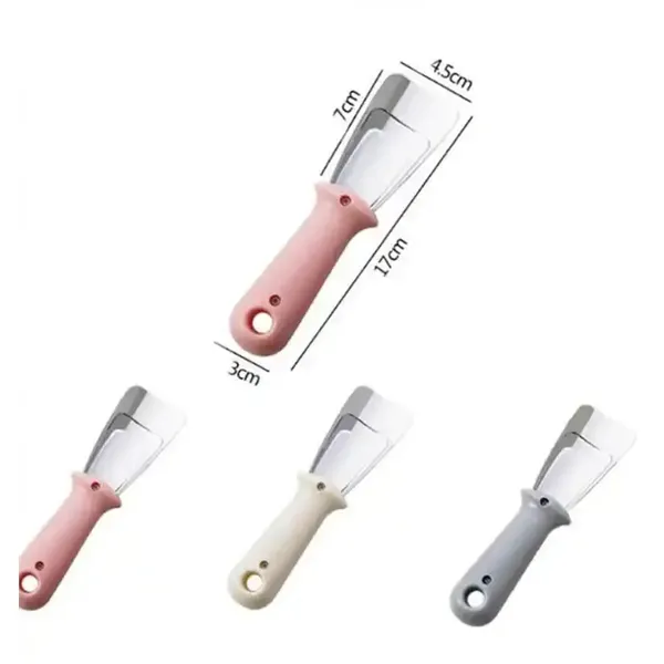 This multifunctional tool, made of PP plastic and high-quality stainless steel, is safe and hygienic for kitchen use. Featuring a convenient hanging hole in the handle for easy storage, it#039;s designed for cleaning thick ice layers in freezers, enhancing refrigerator efficiency and reducing power consumption. Additionally, it can be used for kitchen decontamination and vegetable cutting, offering both convenience and sanitation. Customizable with a logo, this 6.7"L x 1.8"W tool is an excellent choice for kitchen essentials and promotional gifts.