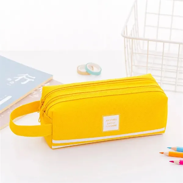 Stay organized with our Large Capacity Zippered Student Pencil Pouch. Made of durable oxford material, this pouch features dual-layer zipper compartments to help you classify your stationery supplies. The soft handle allows for easy carrying, making it convenient for students and individuals on the go. Additionally, it can be used as a travel makeup bag to hold your cosmetic tools. A practical and versatile giveaway for back-to-school season or as a promotional item for various audiences.