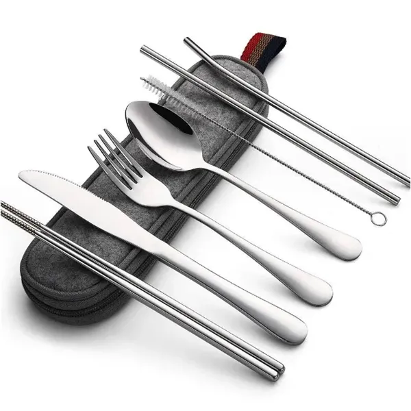 Introducing our environmentally-friendly Reusable Travel Flatware with Chopsticks--an excellent alternative to throwaway or single-use plastic flatware. Crafted from high-quality food-grade stainless steel, this set is durable and healthy for daily use. The stabilizing design ensures no noise during travel, making it a practical choice for various occasions. With its small size and lightweight, the cutlery set with a case is a must-have for daily use, suitable for travel, work, school, flights, workplaces, eating on the go, picnics, camping, and more. Say no to disposable plastic and choose a sustainable and convenient option with our reusable travel flatware.