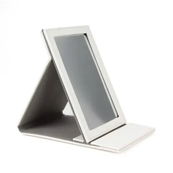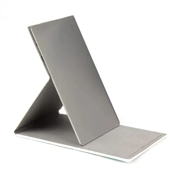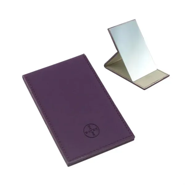 This Elegant handheld folding Mirror is your to go accessory whenever you want to retouch your make up or just simply check on your hair. The casing is made of lovely leatherette and can be debossed or embossed for upscale branding. The Stanless steel personal mirrors are compact, portable and foldable - great for traveling, going out or using at the office! Perfect slim size - 4" x 2.75" x 0.04" - large enough for a convenient use, but small enough to fit in your pocket, purse or drawer. Highly recommended gift for company events, awareness campaigns, women#039;s organizations, spas, hair and tanning salons and health care facilities! Comes in a variety of designer colors.