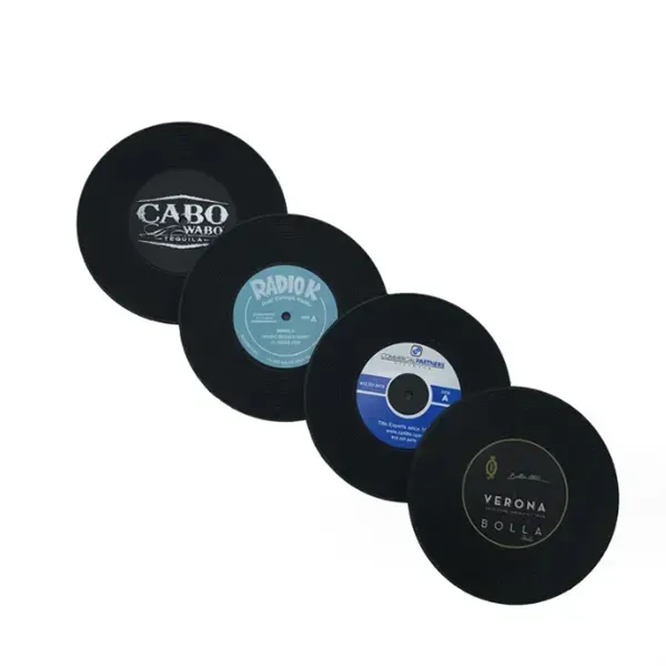 Elevate your table setting with our Music Record Coaster, crafted from eco-friendly PVC and designed to mimic the shape of a real vinyl record. Suitable for any large or small glassware, mug, cup, or bottle, these coasters make a unique and stylish gift. They can also serve as distinctive room decorations, creating the illusion of owning a vinyl record player and records. The price is for bulk packaging, but color box packaging is available with additional charges. Size: 3 15/16" DIAM x 1/16" THICK.