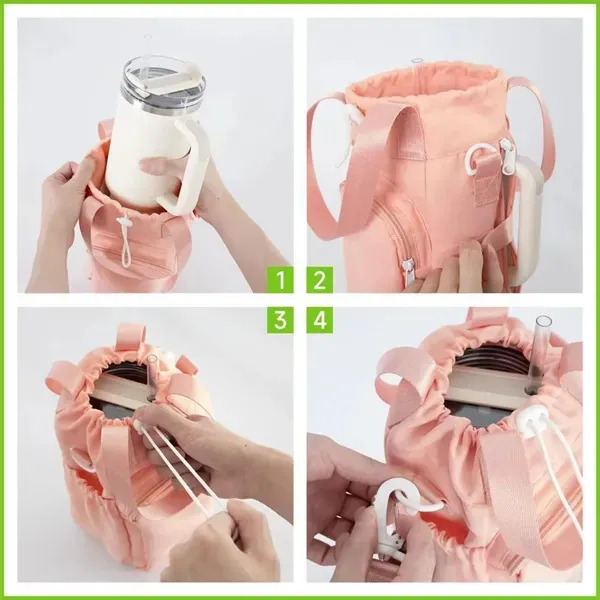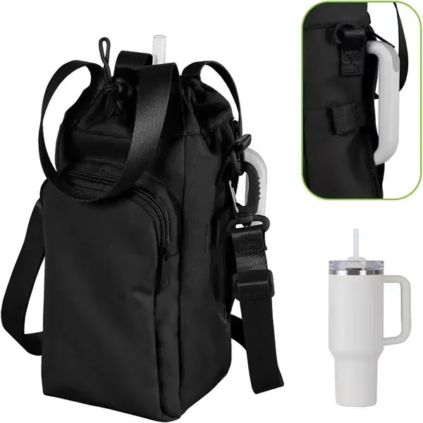 This versatile water bottle carrier bag, designed to fit Stanley 40/30 oz tumblers, combines convenience with style. Featuring a dedicated phone pocket, it keeps your essentials close, while the adjustable strap offers hands-free portability for any activity. Made from durable, lightweight material, it#039;s perfect for outdoor adventures, workouts, or daily commutes. Customize it with your logo to create a practical, stylish accessory that#039;s ready for any on-the-go lifestyle. Perfect for those who need their tumbler and phone within easy reach, wherever they are!