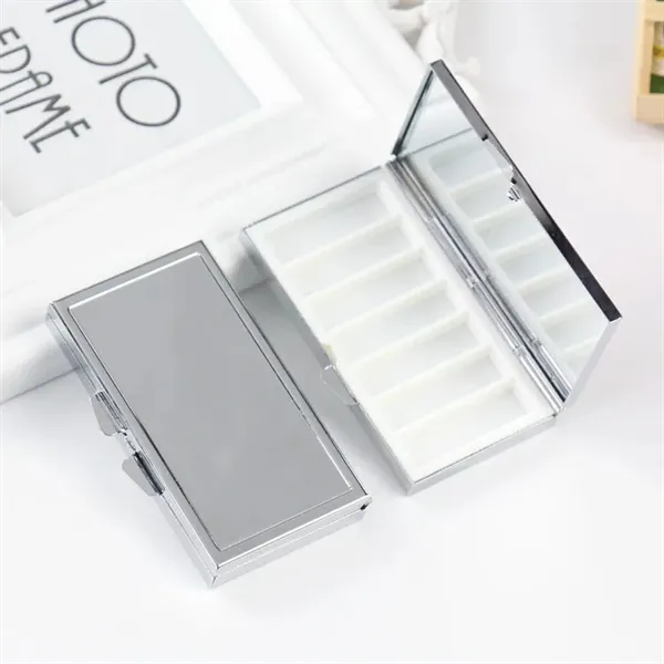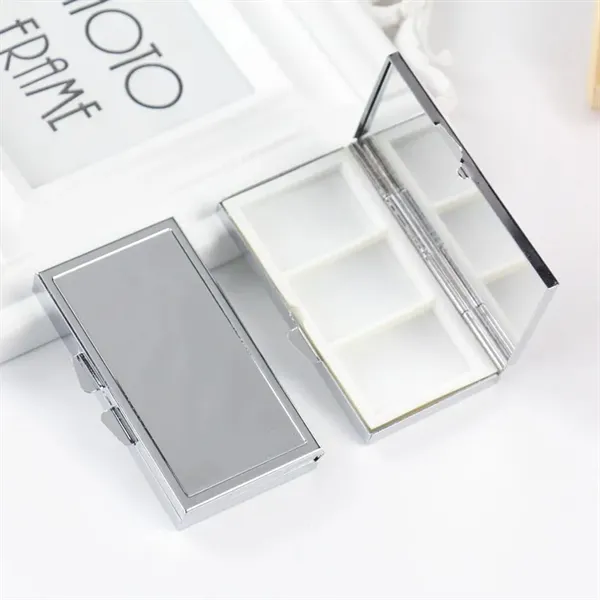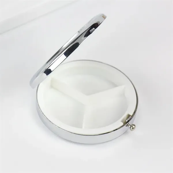 Experience durability and style with our high-quality metal pill box featuring a plastic inner divider. The fine chrome finish and high-gloss image make it both sleek and functional. The reliable spring latch clasp ensures your meds stay securely inside. Its compact size fits easily in your pocket, purse, or travel bag, making it perfect for daily medication on the go.