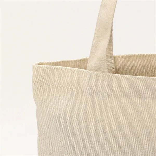 The promotional tote bag is made of heavy canvas. It#039;s useful, lightweight and durable, suitable for libraries and markets. Can be printed on one side. 12.2" L x 14.2"H.