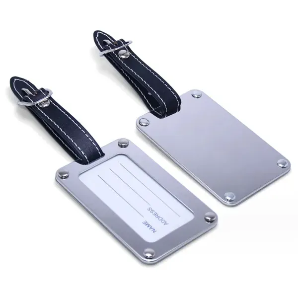 Introducing our Zinc Alloy Luggage Tag with Soft Leather Straps-a durable and stylish accessory for your travels. Crafted from zinc alloy material and featuring soft leather straps, this luggage tag includes a card slot to insert your name, phone, and address information. With a strong and durable design, it#039;s the perfect addition for travel agencies, business conventions, fitness centers, or any travel-related promotion. Measuring 2" W x 3 1/7" H x 1/9" D, this luggage tag combines functionality and sophistication for your journey.